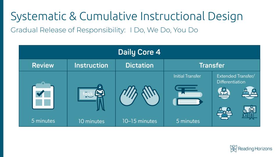 That’s why a simple, repeatable framework makes such a difference. It saves valuable planning time, streamlines instruction, and gives students the consistency they need to thrive. With a steady structure in place, teachers can focus less on managing and more on teaching, while students experience reading as a clear, connected journey.That’s precisely why the Reading Horizons (RH) Method includes the Daily Core 4 Routine. Grounded in the evidence-based principles of structured literacy instruction, it’s one of the most powerful time-saving practices—and one of the reasons RH has become such a trusted resource for teachers across the country.