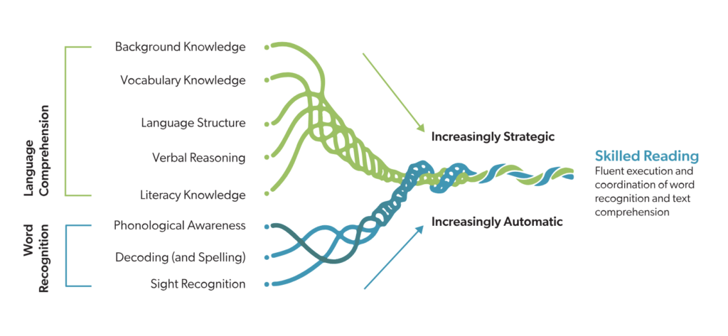 The lower strands of the rope, involving skills such as orthographic mapping (the process of attaching phonemes to graphemes), need to become increasingly automatic over time to achieve skilled reading. But historically speaking, this hasnât always been applied in the best possible ways in instruction. The upper strands of the rope deal with language comprehension skills needed to understand what is being read.
